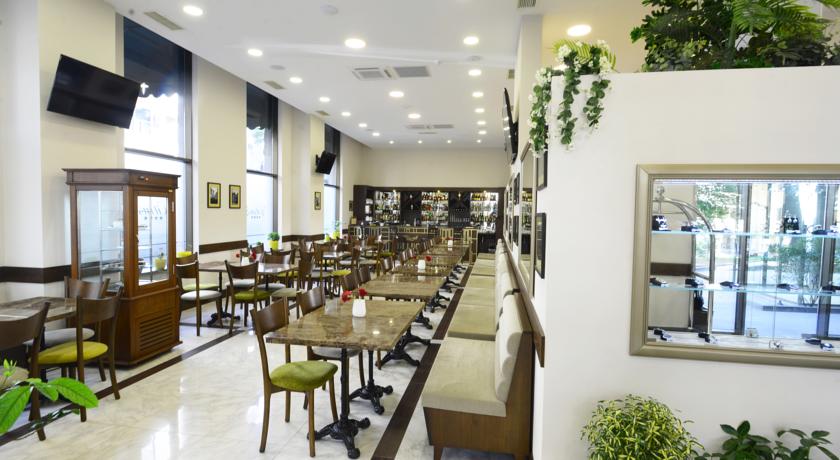 Ежедневно в ресторане отеля подают блюда европейской и грузинской кухни, а также накрывают завтрак «шведский стол». В баре Beluga можно заказать коктейли и разнообразные алкогольные и безалкогольные напитки. Осуществляется доставка еды и напитков в номер. По запросу гостям предоставляются упакованные ланчи.